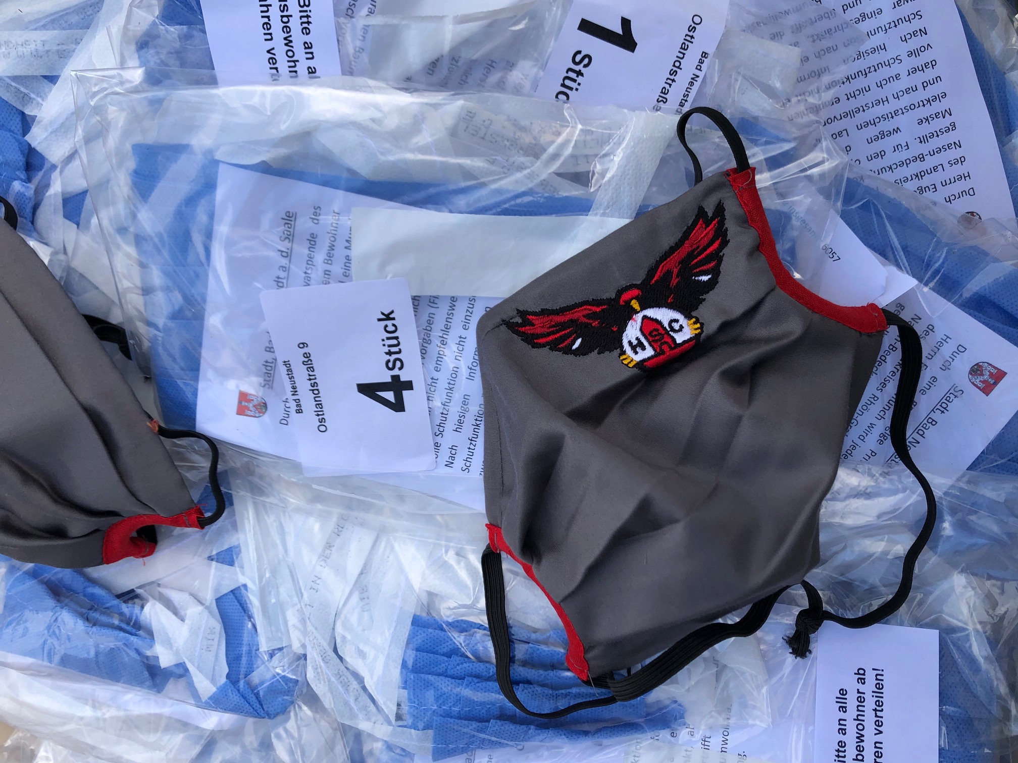 Masken für den Landkreis Rhön-Grabfeld und Bad Neustadt! Für den HSC als großen Sportverein der Stadt ist es selbstverständlich, in diesen Zeiten zu helfen und zusammenzustehen. Deshalb haben wir keine Sekunde gezögert, als die Anfrage kam, ob wir auch bei der Verteilung der von Eugen Münch gespendeten Masken mithelfen wollen. Am Samstagvormittag haben deshalb Spieler der Rotmilane, der 2. Mannschaft und der B-Jugend die Bürger des Stadtteils Gartenstadt mit Masken ausgerüstet. Vorsortiert und eingetütet wurden sie von den Feuerwehren der Stadt. Vielen Dank für die gemeinsame Hilfe an alle Beteiligten.